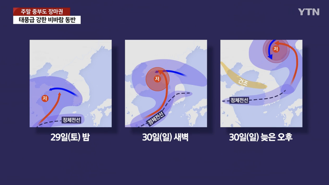 - 중부지방 장마기간 예상 날짜 : 6/25일~7월26일