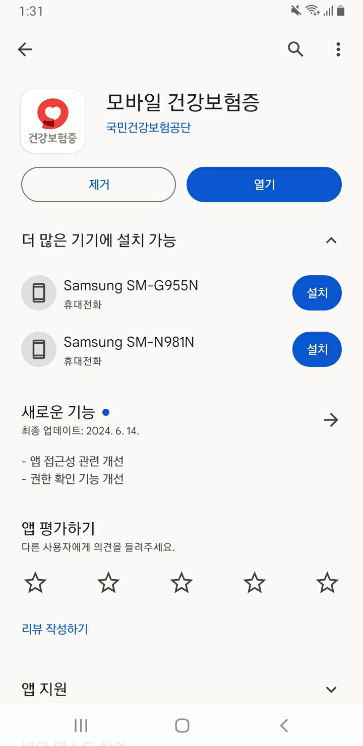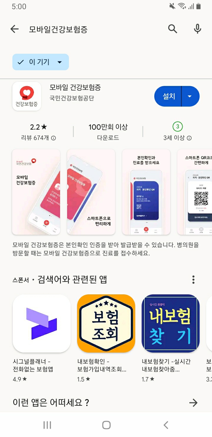 아이폰 "앱스토어"에 들어가서 검색"모바일건강보험증"