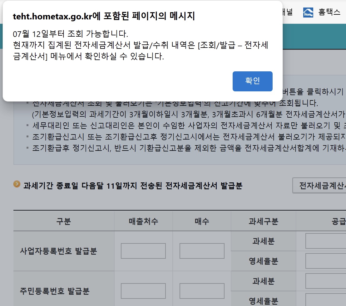 전자세금계산서 조회는 7월 12일 부터 조회가 된다는 점도 꼭 확인해보시기 바랍니다. 간단하게 부가세 신고방법에 대해서 알아보았는데요.