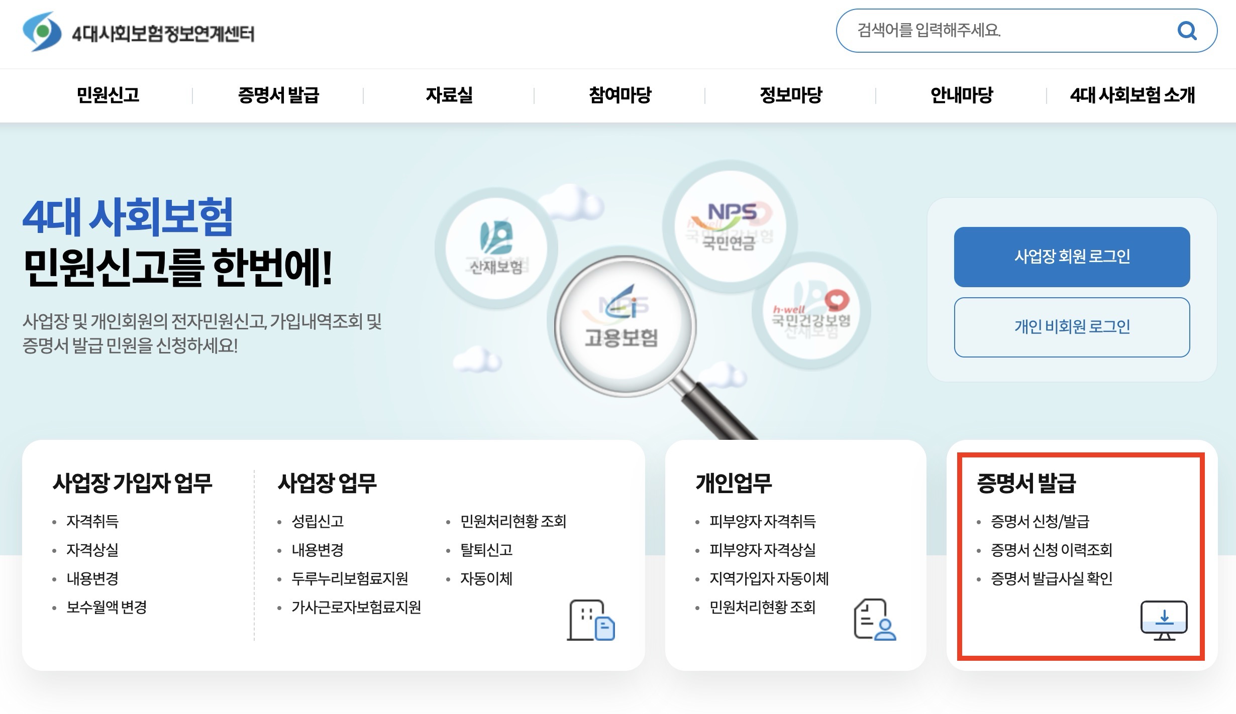 - 4대사회보험 정보연계센터 홈페이지 접속